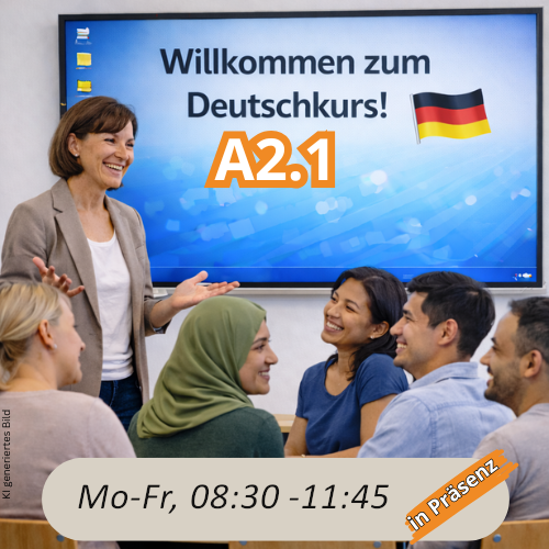 Nachmittagskurs Deutsch Modul A2.1 Präsenz vom 18.05.2026 bis 15.06.2026Nachmittagskurs Deutsch Modul A2.1 Präsenz vom 18.05.2026 bis 15.06.2026