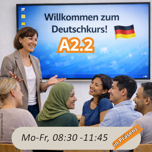 Nachmittagskurs Deutsch Modul A2.2 Präsenz vom 16.06.2026 bis 13.07.2026Nachmittagskurs Deutsch Modul A2.2 Präsenz vom 16.06.2026 bis 13.07.2026